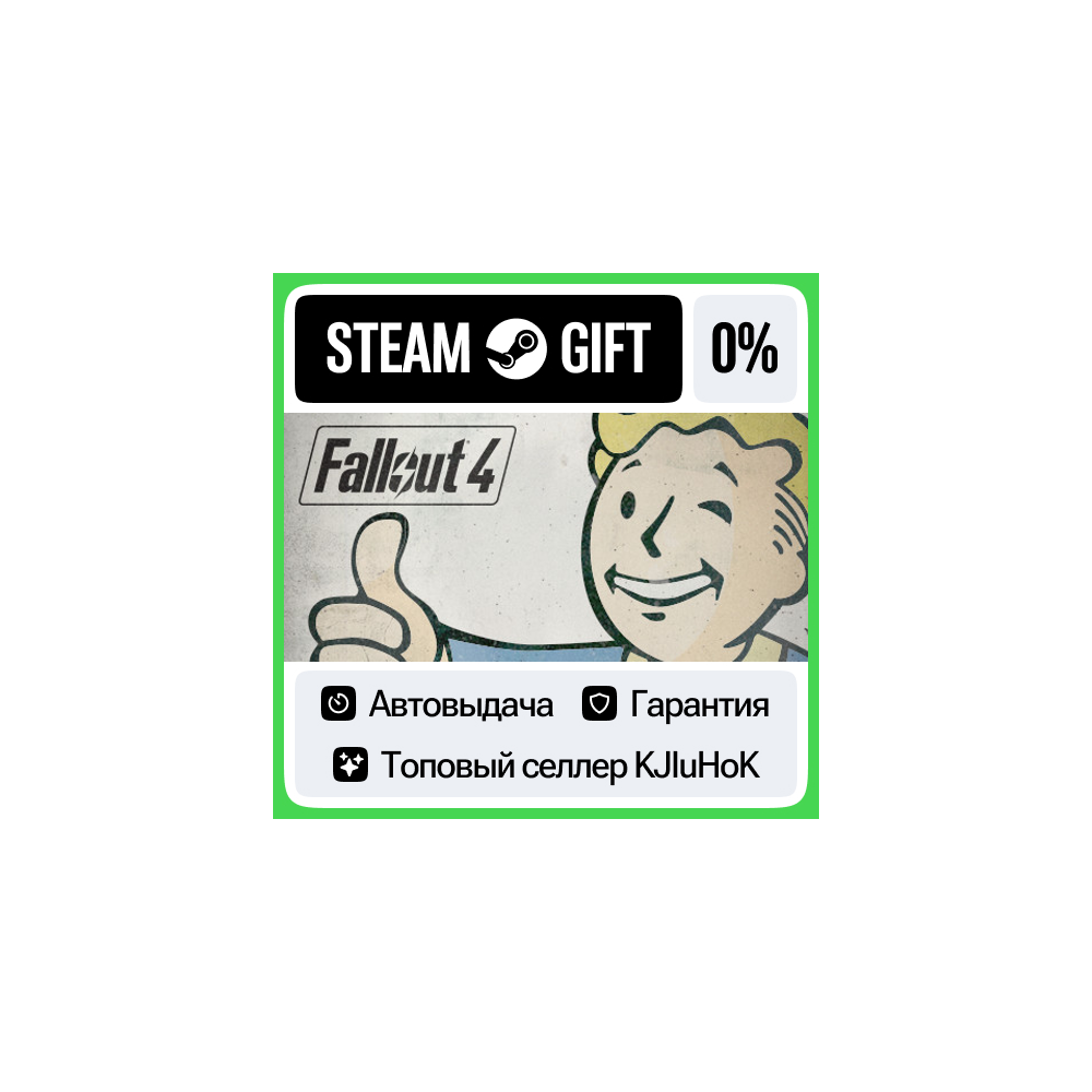 После оплаты вы получаете официальный Steam Gift Fallout 4, отправленный на ваш аккаунт автоматически в течение минуты. Игра передается напрямую через систему Steam и подходит для активации на ПК в регионах Россия и страны СНГ. Купить Fallout 4 в формате подарочной ссылки — удобный способ получить игру без комиссий и ожидания.